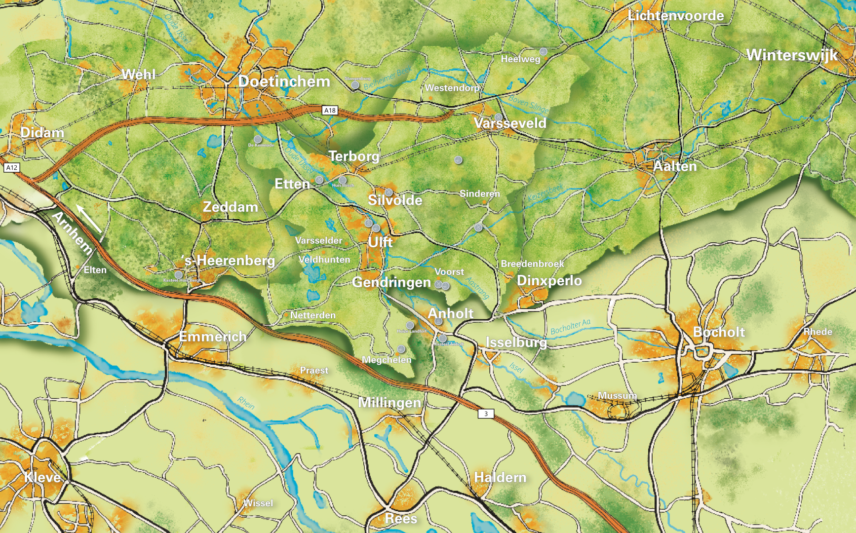 Die schöne Region Oude IJsselstreek liegt gleich hinter der Grenze, in der Nähe von Anholt (12 Minuten mit dem Auto), Emmerich (20 Min.), Bocholt und Kleve (30 Min.) sowie Kalkar (40 Min.).